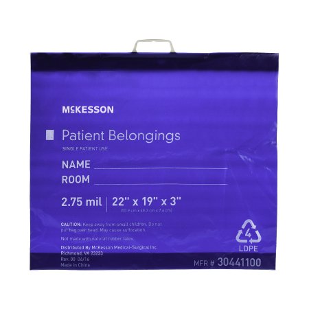 Patient Belongings Bag McKesson 3 X 19 X 22 Inch Polyethylene Snap Closure Blue