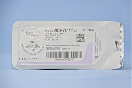 Absorbable Antibacterial Suture with Needle Coated Vicryl™ Plus Polyglactin 910 CT-1 1/2 Circle Taper Point Needle Size 0 Braided