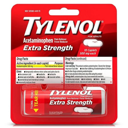 Pain Relief Tylenol® Extra Strength 500 mg Strength Acetaminophen Caplet 10 per Bottle